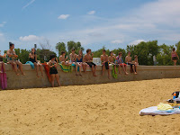 This is one of the Queen to Be and her new friends that are starting co-op with us this fall they are sitting on the rope that sections of the beach area